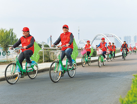 昨日下午,团市委与市文明办共同举行《绍兴市大气污染防治条例》《绍兴市水资源保护条例》公益骑行宣传活动。青年志愿者身着红衫,骑着自行车,沿着市区几条主要道路,向市民宣传绿色环保、共建共享的理念,身体力行助力治水攻坚战、提升“五水共治”知晓率。