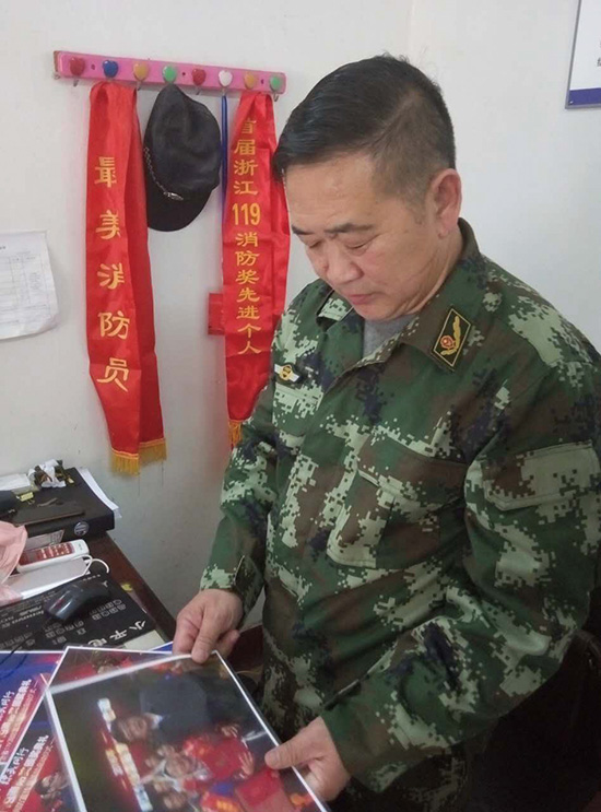 除宣传消防知识外,闾品兴最主要的工作当然是救火。作为一名“救火队长”,他已记不清自己到底扑灭了多少起火灾。不过,2011年元月1日发生的那场火灾却给他留下了深刻印象。当天凌晨3点,闾品兴接到了袁岙村民宅发生火灾的报警,于是立即和队友们一起冒着刺骨的寒风赶到了现场。此时,民宅已被熊熊烈火包围,整个天空都被烧成了红色,如果不及时扑灭,极有可能危及周边的连片木房。情况危急,闾品兴举着水枪第一个冲到了现场。“因为天冷,当时气温-4℃,救火用的水流到大路上都结冰了。”闾品兴说道,他和队友们一起整整用了3个小时才把大火彻底扑灭。当他坐下来休息没多久,救火时所流出的汗水就结成了冰,身体和衣服、脚和鞋牢牢地粘在了一起。