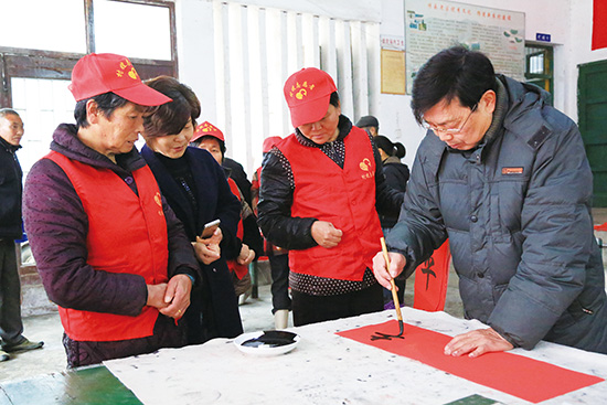 1月6日,市老年书画研究院的20位书画家分赴北漳镇、下王镇进行送春联活动,当天共为当地百姓书写春联500余幅。