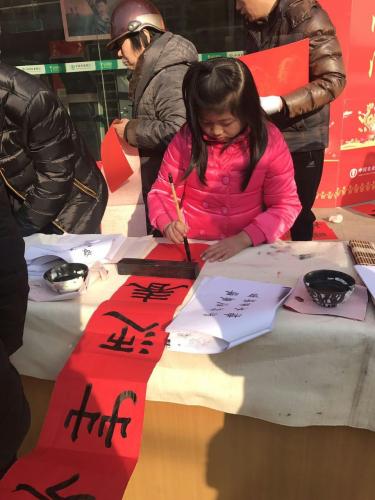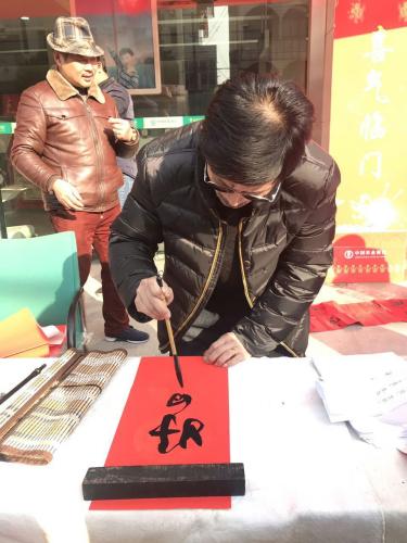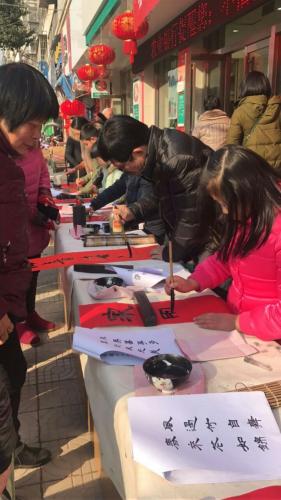 甘霖镇联合农业银行、镇书法协会开展送春联,送福字活动。