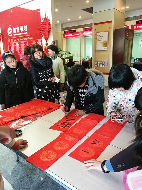 为营造春节气氛,激发小朋友对书法的兴趣爱好,日前,招商银行嵊州支行开展了“小小书圣”活动,本次活动邀请多位客户子女前来银行书写春联,“小书圣们”娴熟的笔法、工整的字体获得了在场客户的高度赞赏,也大大激发了他们的自信心和对书法的热爱。