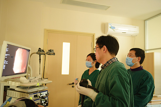 图为陈毅鹏博士在内镜操作。