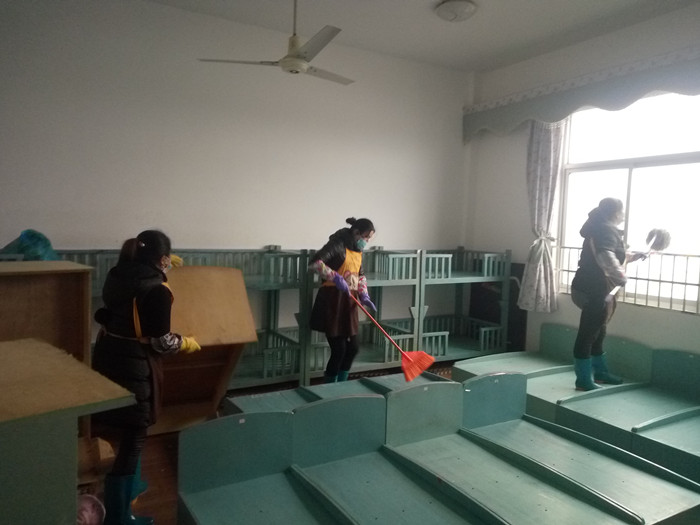 园里环境卫生工作量非常大,园领导对此作了详细的部署,将清理工作进行合理的分配。本次活动以小组的形式开展,第一组技术组,他们负责检查园舍的各个设施安全情况,检查水电的情况;第二组食堂人员,他们负责食堂各角落的卫生打扫工作以及所有餐具用品的清洗消毒工作;第三组强大的保育员阿姨团,她们负责各个活动室、走廊、墙面、楼梯、大小型玩具、桌椅、床铺等等的清洁清洗消毒工作。第四组教师组,老师们给教室、走廊穿上漂亮的“新衣”。各教职工扫的扫、抹的抹、擦的擦、洗的洗、修的修、换的换、挂的挂、贴的贴,干劲十足,热火朝天。大家对幼儿园各个角落进行卫生大清除,安全大排查,争取做到不留死角、不留盲区。经过大家的“奋战”,幼儿园将焕然一新,呈现出整洁亮丽、活泼清新的新气象。