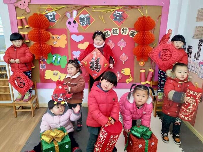 新学期开学了,黄泽镇中心幼儿园的小朋友们带着新年的甜甜蜜蜜回到了幼儿园,又和老师,小朋友相聚在一起,欢声笑语,其乐融融。一起分享新年里有趣的事情,共享新年的玩具,新年的游戏。噢!过年真开心,见面真开心!那么新年究竟是都什么呢?主题“过年真好”让幼儿尝试收集最具过年氛围的红色物品来回忆并串联起过年的快乐情景,细细品味“年”的味道。通过收集,欣赏和创造性表现,幼儿对过年的红色产生了浓浓的兴趣,了解了中国特有的过年习俗。从中发现了传统年中团聚,喜庆的意义。通过画鞭炮,做灯笼,幼儿再现和体验新年喜庆热闹的场景。