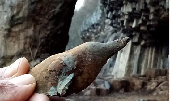 3月6日,一批地质爱好者在嵊州市下王镇石舍村的火山节理地质公园游玩时,发现玄武岩的石层中间有一种固形物,像树根一样“缠绕”在石头的缝隙之中,而且形态各异,“长在”缝隙中,与石块并存。