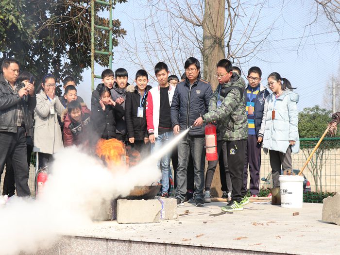 接着,校消防队队长沈亚东老师对全校师生进行了灭火器使用的培训,讲解了灭火器的使用原理以及相关的注意事项,并亲自演练了灭火器的使用方法。在认真听讲后,同学们亲自体验了现场灭火的过程,对学生在操作过程中的错误进行了及时的纠正。
