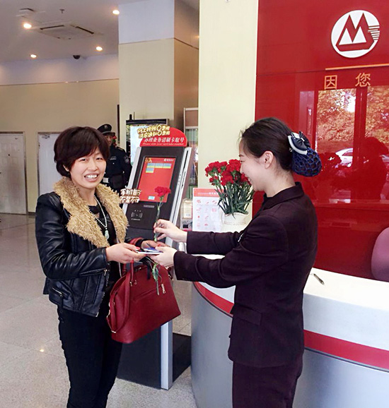 女人如花,3月8日是女人的节日,为让客户感受到了招行的温馨以及节日氛围,当日,招商银行绍兴嵊州支行为每位来厅堂办理业务的女客户奉上了鲜花。