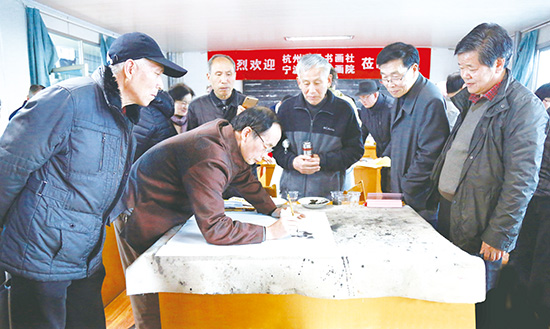 活动现场,杭甬两地书画家与我市老年书画研究会的会员一起提笔挥毫,各展所长。据悉,“文化走亲”活动为期两天,届时,书画家们还将朝拜王羲之故居、参观女子越剧诞生地施家岙等地,体验嵊州文化。