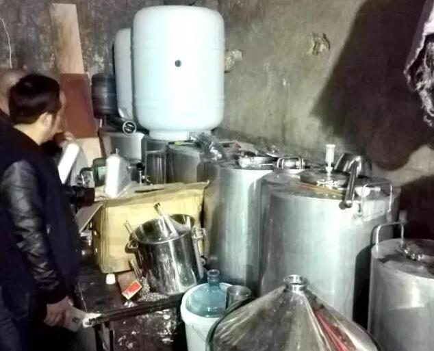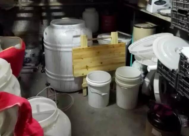 市场监管局近日在食品安全排雷“百日攻坚”行动中,捣毁一处红酒生产地下窝点,现场查获葡萄酒210瓶、猕猴桃酒18瓶,以及一批用于非法生产红酒的酿酒设备、加工设施、包装材料等。