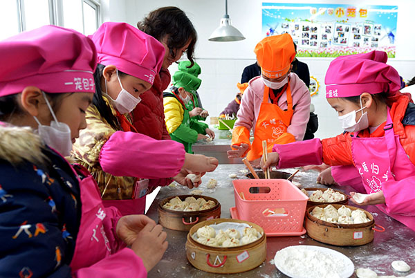“今天学做小笼包,我很开心,我回家后要把劳动的快乐分享给爸爸妈妈。” 四(2)班的童欣慧道出了全体小朋友的心声。