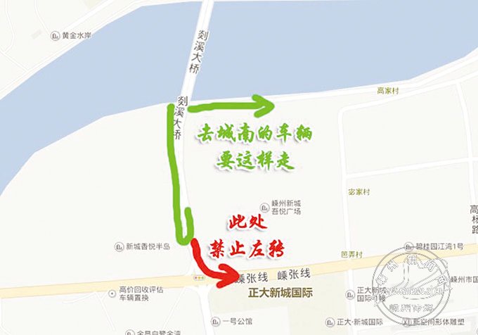 如果要左转到人民医院、新国商等方向,可以在剡溪大桥南端管制区域右转调头,再经剡溪大桥桥下,即可选择你想要去的地方了。
