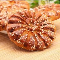 十一、马蹄酥:马蹄酥原为唐代的宫廷食品。相传唐王李世民的原配夫人长孙皇后回家乡陕西省探亲时,携带马蹄酥作为随身礼物。乡亲们尝后赞叹不已,经皇后同意,娘家派一名心灵手巧的人,向随行御厨学制作此佳点的工艺,后来传入民间。据悉,黄泽的马蹄酥制作起源于清代,其制作工艺与唐代相比有所改进。它的原料主要有面粉、白糖、麦芽、猪油、芝麻;分酥皮、拌馅等制作工序,揉全后贴在竖炉壁上烘烤。这种饼酥脆馅甜,味道很好。