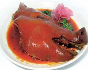 十二、风猪头:黄泽的风猪头,内里皮色红黄,外表更有一种乌黑到了尽头的光辉灿烂。不必纠缠这风猪头的腌制都用了哪些调料,也不必争辩它在农家屋檐下究竟挂了多久。更不必说这风是西风,是北风,还是西北风,单是怎样烹饪这风猪头肉,充满着地方特色的工艺与文化。更可贵的是这风猪头肉可以单独蒸吃,切片后,肥肉似蜡,瘦肉棕红,原汁原味,滋味醇厚。也可以炒青辣、也可以蒸冬笋……不管放在那里,总是热蓬蓬香喷喷,让人食欲大增。目前,此特色小吃在黄泽镇东直街上有多家饭店加工出售。