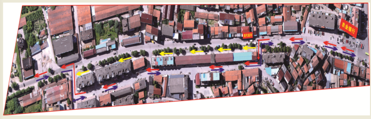 注:1.红色箭头代表农业银行通往西牌坊的道路绕行线路(由东到西)