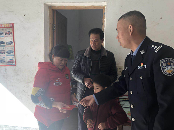 据了解,这次派出所慰问的主要对象为家有小孩的困难户,他们希望通过这样关怀的形式,对贫困家庭的孩们产生积极的影响。图为慰问的场景。