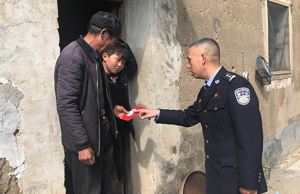 今年春节期间,为让贫困家庭过一个丰盛的新年,甘霖派出所教导员张华和管家民警费亮代表甘霖派出所向里南乡几位特困户送上民警和协辅警们的爱心捐款。