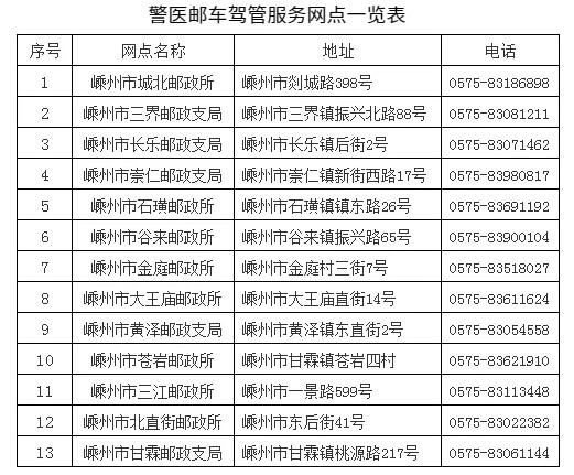 三、嵊州市邮政局及其下属邮政支局(所)(警医邮车驾管业务服务站)可办理的车驾管业务共四大类十四项如下:
