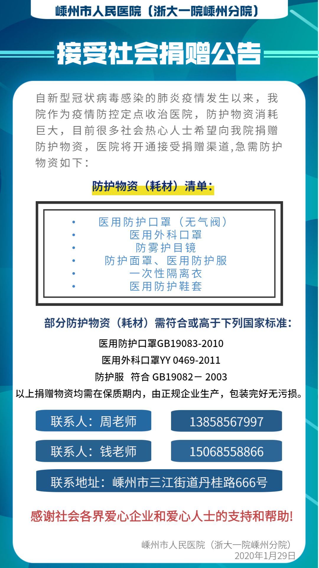 市人民医院(浙大一院嵊州分院)接收社会捐赠公告