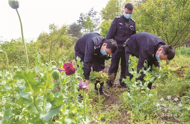昨日,市公安局剡湖派出所组织警力对碑山村挂锣自然村村民在果园种植的罂粟进行拔除销毁。