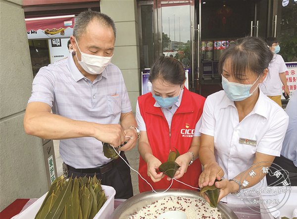 6月24日上午,浙江交通集团嵊州服务区(常台高速嵊州服务区)联合浙商证券嵊州营业部,开展了主题为“不分南北、不论咸甜”的享粽会活动。活动现场,工作人员、司乘人员欢聚一堂,动手包粽子、编五彩绳、做香囊,并将它们送给路过服务区的司乘人员。在活动开展的一个半小时里,共送出250个粽子、100个香囊。