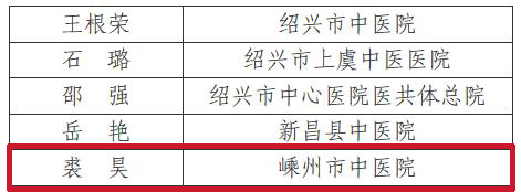 “绍兴名医”“越医名家”“绍兴名中医”称号人选公示