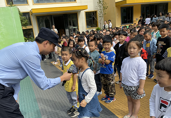 为确保幼儿园工作的正常的运行,进一步加强幼儿园的安全防范工作,预防社会人员袭击校园或突发暴力事件时教职工和师生如何应对,特邀请了三江派出所的黄龙警官和他的队员对全体师生进行了国旗下反恐防暴知识培训。