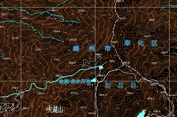 然而,这一“阶段性结论”仍值得商榷。为考证王羲之归隐和卒葬之所,以及与之密切相关的金庭山、金庭观、大湖山、王罕岭、赤水丹池等故址及遗存所在,嵊州市地方文史工作者在大量文献史料考据、高清航拍地图研究的基础上,一行七人于12月22日再次赴金庭实考。本次考察由金庭镇政府出发,经华堂、济渡、新合后入谷,自毛勇越岭,沿大湖山山脊上行,最终抵达赤水丹池、龙潭头一带。从毛勇步行至丹池,历时约90分钟。现结合历次考辨,参研历代典籍方志、金庭王氏族谱等史料,将上述遗存状貌及有关观点摘要陈述如下,供方家指正。