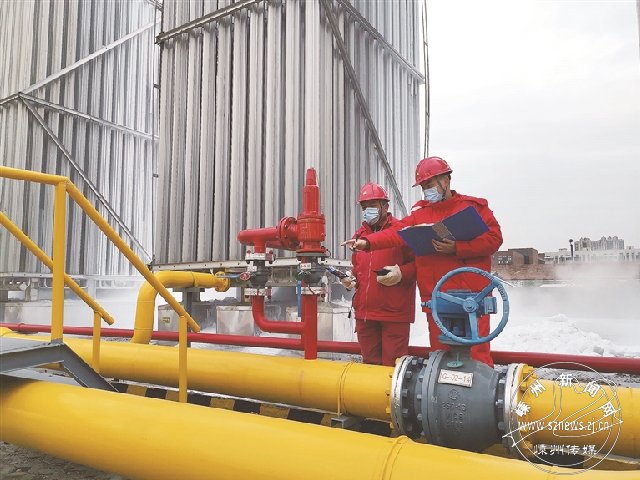 为保障区域内供气平稳有序,确保居民温暖过冬,连日来,嵊州中石油昆仑燃气有限公司积极组织开展冬季安全大检查,对工商业、居民小区以及施工现场等天然气设备设施逐一进行了彻底安全隐患排查。图为嵊州中石油昆仑燃气有限公司员工正在对液化天然气存储设备进行检查。