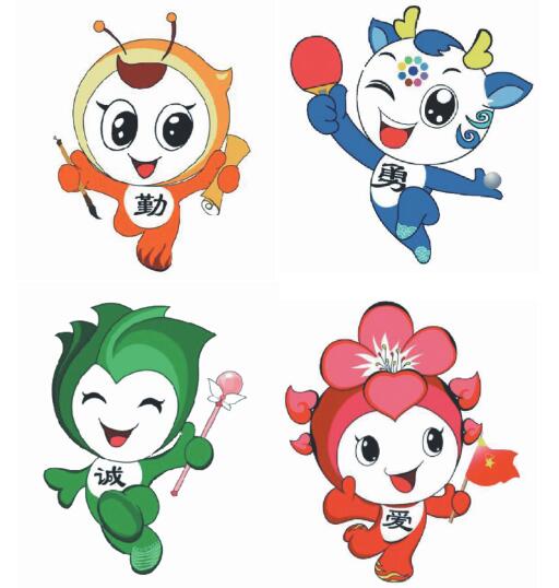 剡娃勤勤手握毛笔和宣纸,如花丛之蜜蜂,在知识的芬芳中采撷,同时体现剡山的书画特色,寓意剡山学子如勤劳的蜜蜂,“勤奋、勤勉,业精于勤,勤者为才”。