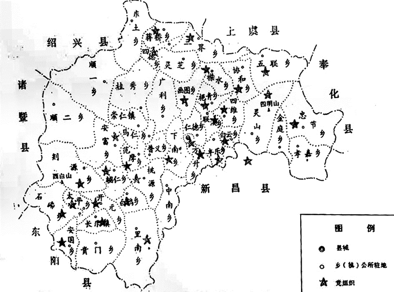 到1939年底,全县已建立嵊东、嵊西和城区等3个区委,有35个支部,299名党员,成为宁绍地区党员人数最多的3个县之一。