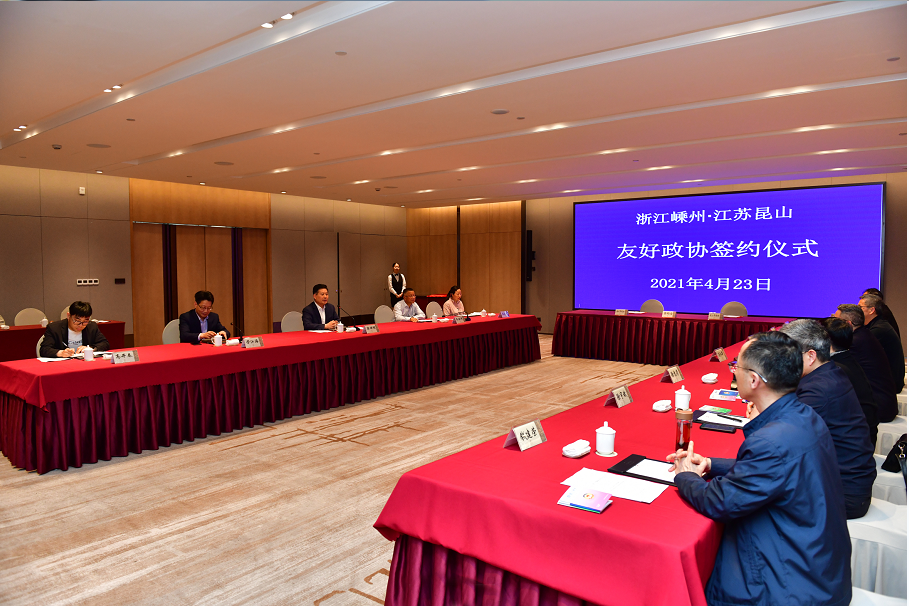 4月23日下午,江苏省昆山市政协主席冯仁新一行前来我市,考察政协委员会客厅、基层协商、委员履职和智慧政协建设等工作,并与我市签订了友好政协协议。