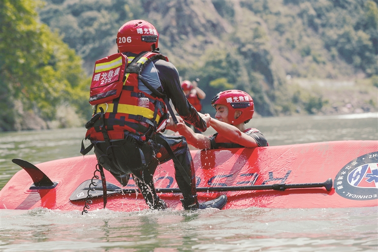 8月8日,我市与新昌县民间救援队在甘霖镇剡溪水上救援训练中心联合举行水域搜救演练,演练分立上搜救与潜水搜救等多个内容,共同提升嵊州与新昌两地民间救援队的救援能力与团队间的精诚合作。