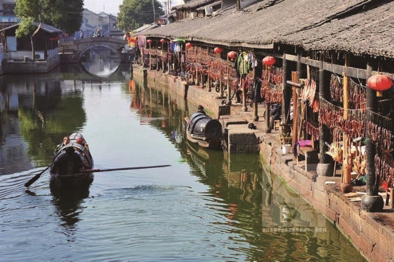 眼睛巴巴地在纸上的酱鸭、腊肉间逡巡,只是片刻工夫,五官仿佛被打通一般,我的鼻尖好似闻到了淡淡的酱香。它们渗透纸张,从七八十公里外的地方跋涉而来。更确切地说,是吸引着我向它们走近。于是,某个天气晴好的周末,我像一个不速之客,来到了安昌古镇。
