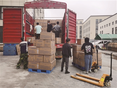 4月14日下午,浙江乐芙医疗用品有限公司把刚赶制出来的5000件隔离衣和5000件防护服装到大货车上,连夜送往上海,捐赠给漕河泾新兴技术开发区。