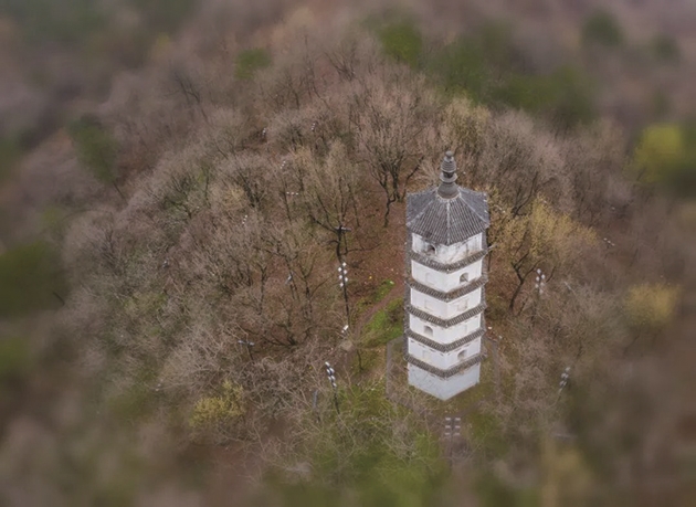 蒋伟文 摄 天章塔位于谢慕山巅,清乾隆时期建筑。因山下有花田村,俗称“花田塔”。 天章塔系楼阁式密檐砖塔,平面六边形,底边长3.40米,现存六层,高约23.9米。底层西面开门,以上各层设壸门,每层用菱角牙子叠涩出腰檐。 天章塔系嵊州仅存的两座古塔之一, 1981年4月公布为县级文物保护单位。