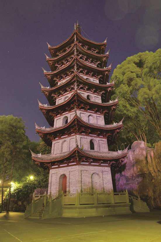 赵楠 摄 应天塔俗称大塔,乃古刹经塔,亦为风水塔。六边形,高七层,约20米。原屹立于嵊城鹿胎山麓惠安寺东侧。据县志载,塔建于梁天监二年(503)。几度重修,至上世纪70年代倾斜拆除。2010年,遵原貌重建于旧址西北70米的鹿山公园内。