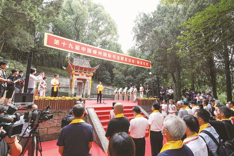 昨日上午,第十九届中国嵊州国际书法朝圣活动在金庭举行。省文联副主席、省书协主席赵雁君,省书协副主席兼秘书长何涤非,以及我市领导裘建勇、孙海荣、柴理明等参加。