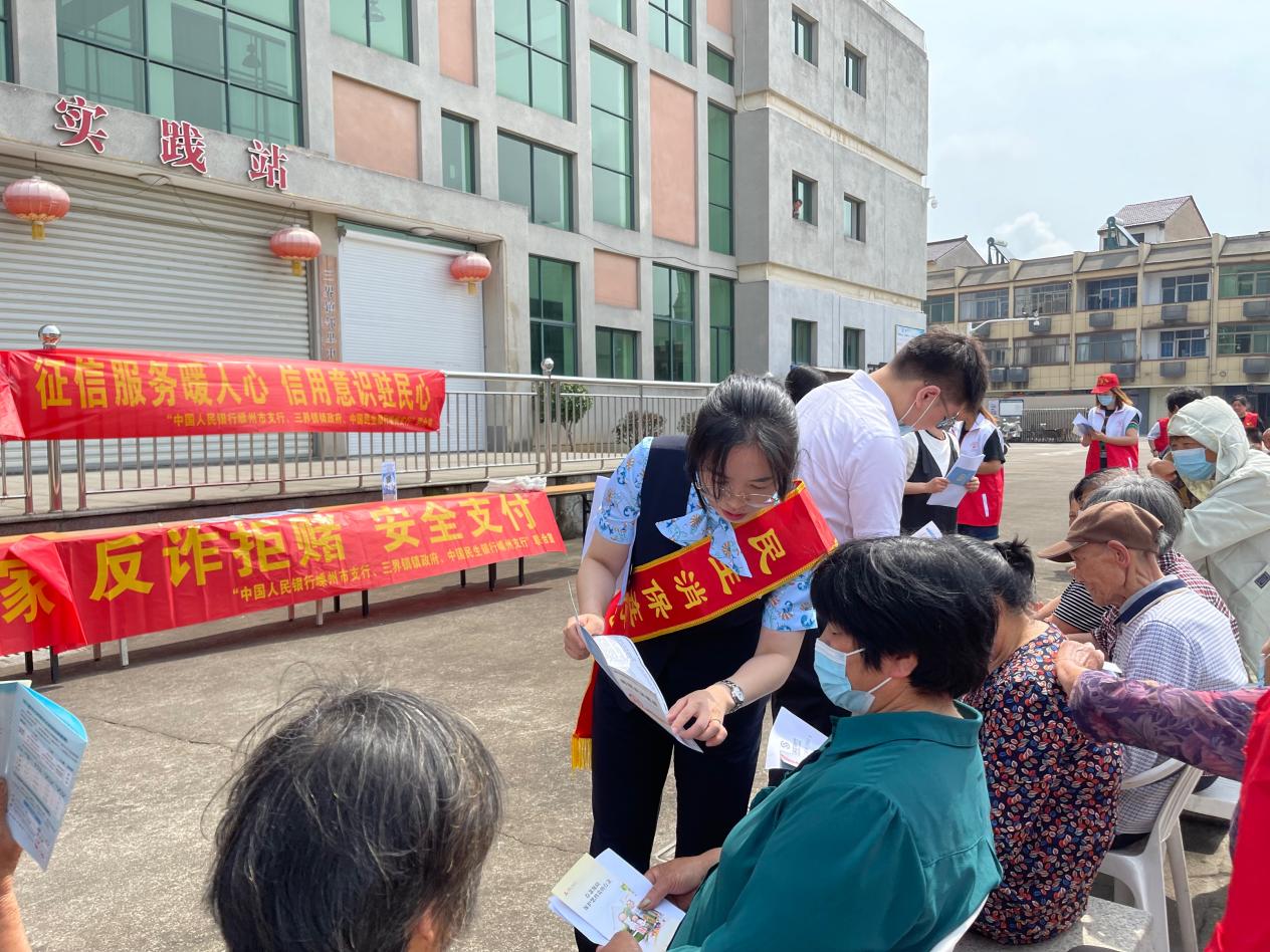 其次,6月14日上午,嵊州支行联合中国人民银行嵊州市支行及三界镇人民政府,在三界镇文化广场摆摊进行线下宣传。此次宣传活动,累计发放宣传折页100余份。通过此次活动,进一步营造了市民“守信光荣、失信可耻”的浓厚氛围,推进嵊州市信用体系建设再上新台阶。 下一步,民生银行绍兴嵊州支行将持续加强诚信建设工作,不断创新宣传形式,推出务实举措,在全行形成学征信、懂征信、重征信的良好风尚,为嵊州市经济社会高质量发展作出更大贡献。