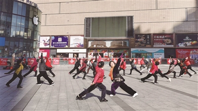 为备战市第八届市民运动会,连日来,木兰拳协会的会员们在开元广场刻苦练习,争取取得好成绩。