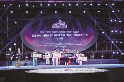 昨晚,中国好声音越剧特别季嵊州专区选拔赛暨“富乐嵊州村村有星”嵊州市首届“村越”好声音总决赛在嵊州中学体育馆举行,8位进入总决赛的越剧爱好者登台打擂,共唱“村越”好声音。浙江卫视党委书记、总监林涌,裘建勇、潘超英、孙海荣、柴理明、屠强等我市副处级以上领导参加并为获奖选手颁奖。