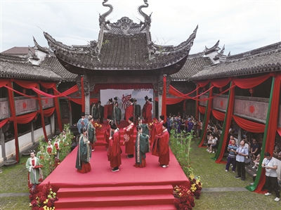 为全面推进全市婚俗改革,推动婚事简办、喜事新办,昨日下午,我市在崇仁古镇玉山公祠举行“情定崇仁古镇·倡导婚俗新风”2023年七夕节集体婚礼,共有10对新人参加。
