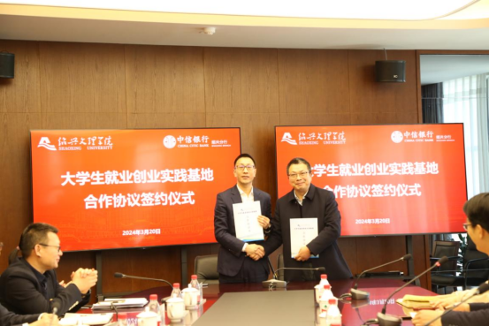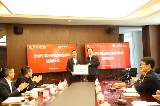 3月20日下午,中信银行绍兴分行与绍兴文理学院举行大学生就业创业实践基地签约授牌仪式并举行座谈会,绍兴分行党委书记、行长周嘹亮,绍兴文理学院党委副书记张宏出席,分行其他领导班子成员,绍兴文理学院商学院相关负责人及学生代表等参加。