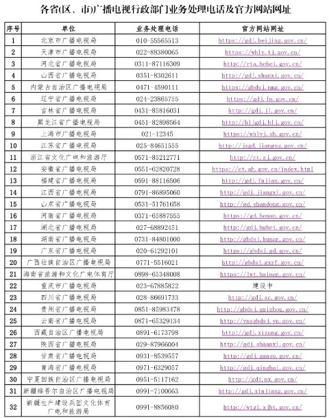 1.所在省(区、市)广播电视行政部门业务处理电话,以及官方网站等线上渠道(见附表);