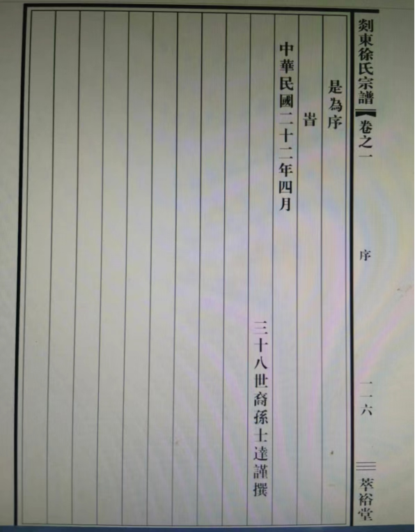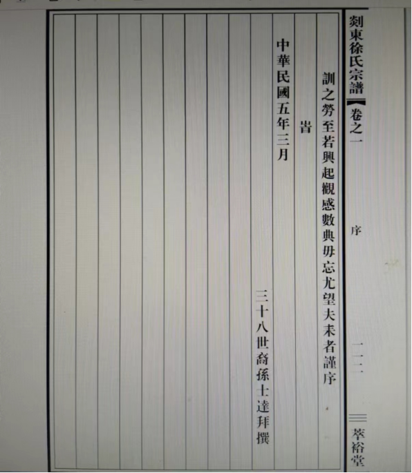 民国五年三月《剡东徐氏宗谱》序文尾页
