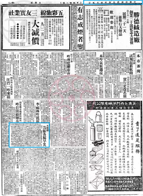 一篇是浙江图书馆所藏的民国二十三年十月二日《申报》上的新闻报道《各团体筹赈各属旱灾》。报道云: