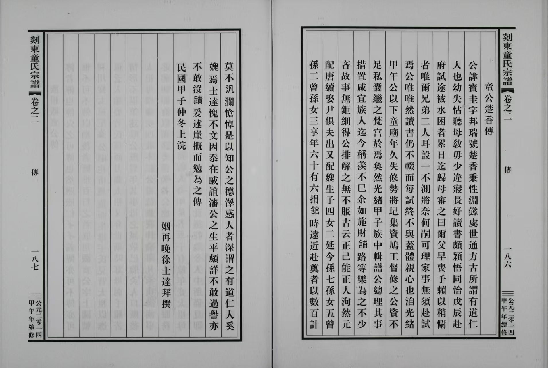 在民国时期社会动荡的背景下,徐士达非常重视东乡的教育发展与文化传承,支持文化活动的开展,保护和弘扬东乡的文化遗产。同时,他与当时的乡长及本地绅士深有交集,且对当时的师长前辈、贤人学士均是尊师重道和谦逊礼上。据《剡东童氏宗谱》卷之二第一八六页记载,录有徐士达于民国13年(1924年)曾为他的亲戚长辈童楚香撰写了一篇《童公楚香传》,文中秉笔直书,言辞凿凿,可见徐士达素怀敬老尊贤之心,也足见其文学修养之深,文以载道,德艺双馨。